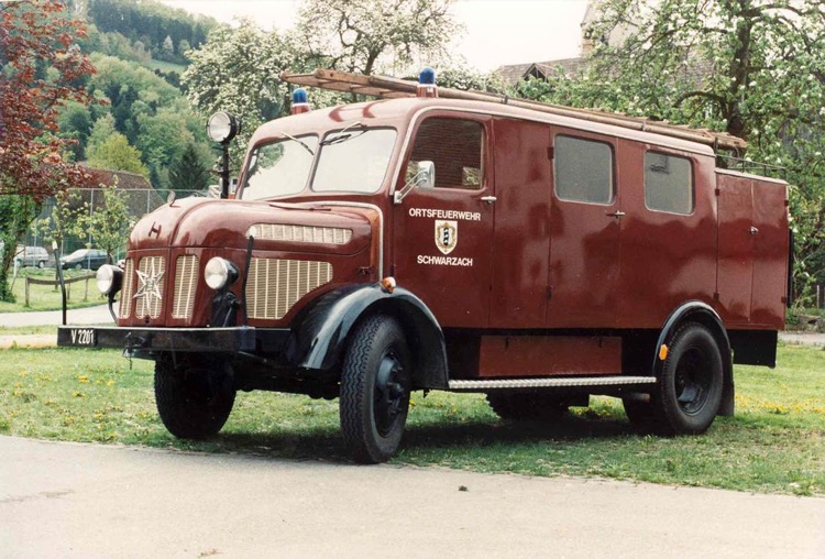 Durch einen Unfall beim Hochwasser 1957 (Bremsenversagen) wurde das LF „Jimmy“ bei der Firma Quehenberger in Götzis auf einen Henschel Dieselmotor umgerüstet.